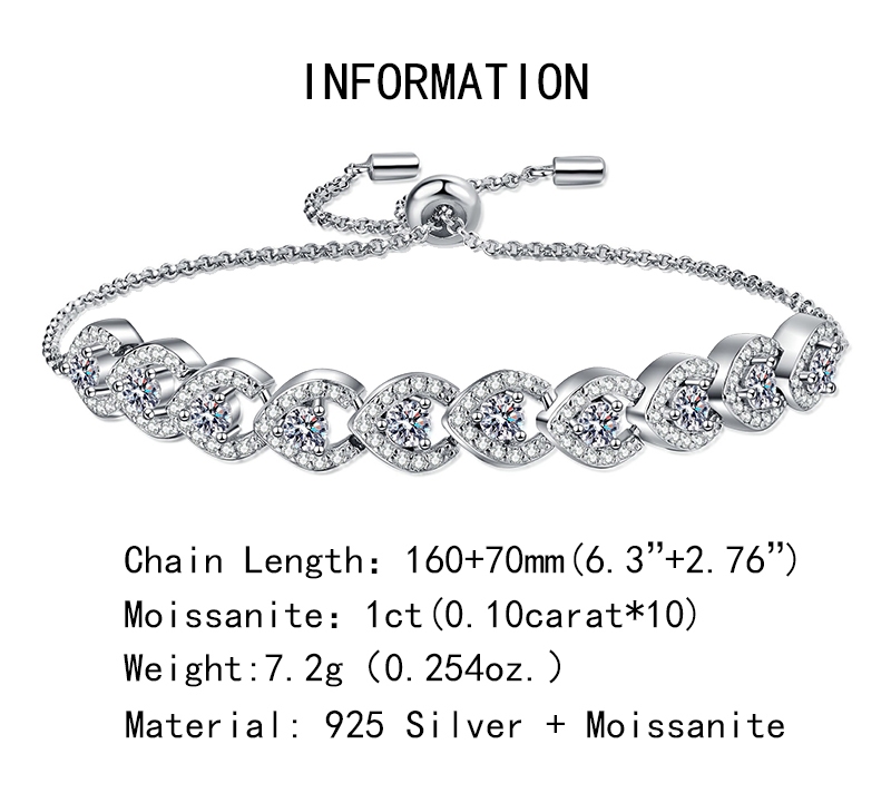 Indulge in the sophistication and elegance of our 1 Carat Moissanite Sterling Silver Bracelet. Crafted with premium 925 sterling silver and a high-quality moissanite stone, this luxurious piece exudes timeless beauty and refined taste. Each bracelet features a delicate 9-inch chain length and weighs just 0.254 ounces, offering a perfect blend of comfort and style for any occasion.