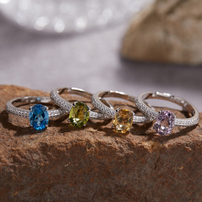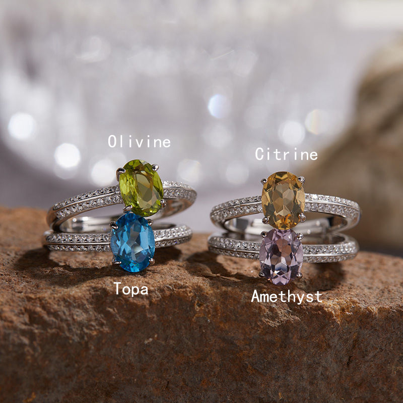 These rings are made of 925 sterling silver, and the pendant color matches the gemstone color. You can choose to order the rings you need.