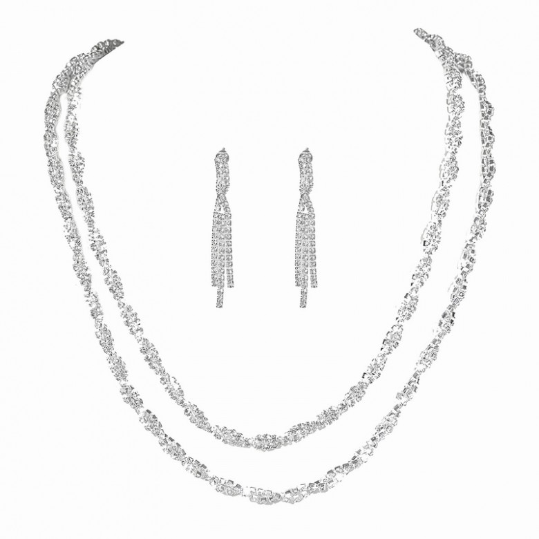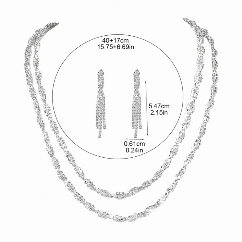 JS9776 Bridal wedding jewelry high-end luxury full diamond necklace earrings two-piece set